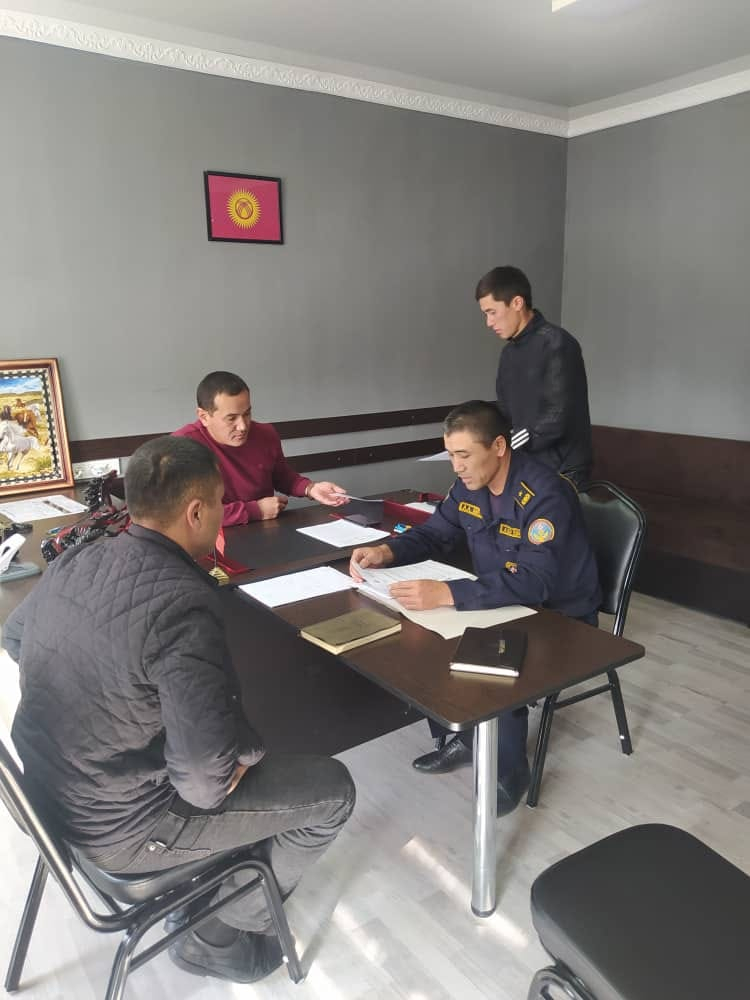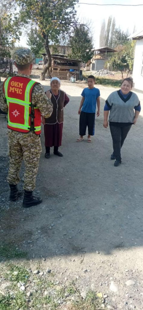 Өздүк курам аймактарды кыдырып, жашоочуларга күнүмдүк турмушта, от жагуу мезгилинде өрт коопсуздук эрежелерин сактоо боюнча түшүндүрүү иштерин жүргүзүүдө.